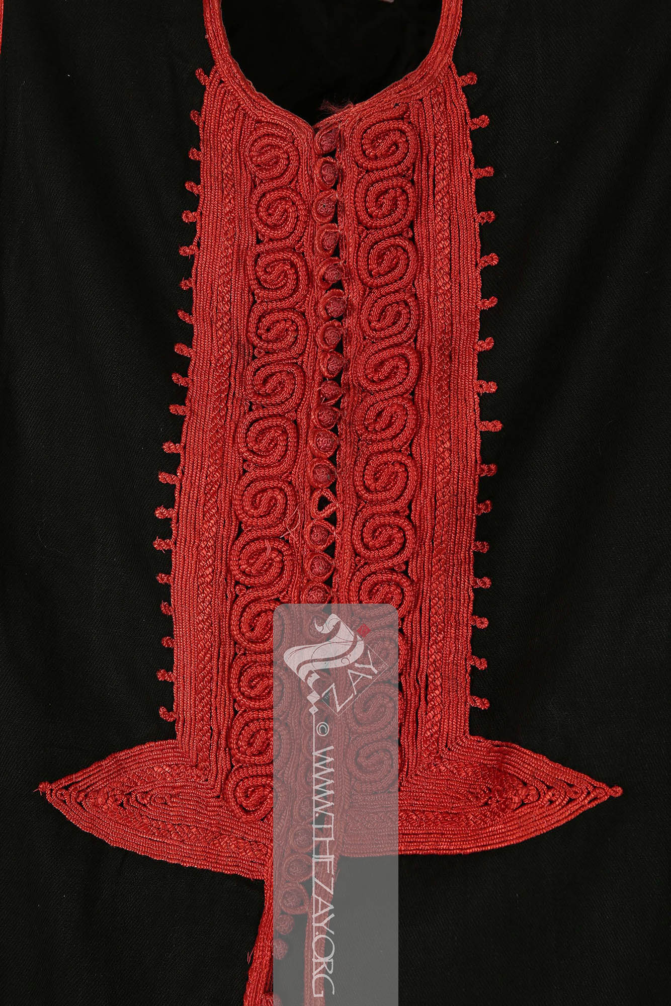 Ṣadrīyah: (Arabic: waistcoat, synonyms: sdayrīyah, ṣdayrīyah, sadrīyah), an embellished hip-length sleeveless vest worn in the North African countries by the Arab and Berber men. It is often adorned with silk thread and cord embroidery and fastened in the front. Couching: (Latin: collocare – Place together), in needlework and embroidery couching is a technique in which yarn or other materials are laid across the surface of the ground fabric and fastened in place with small stitches of the same or a different yarn
